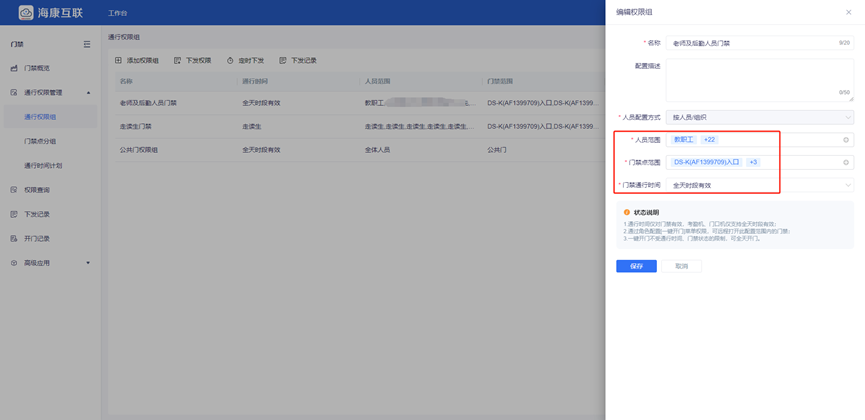完成配置后,通行权限将自动下发至门禁设备。