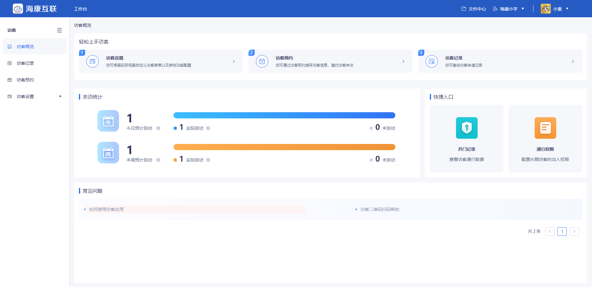 访客入园在线登记:互联云平台可通过访客微信授权获取真实手机号码,解决了传统访客登记信息虚假、字迹潦草的问题。