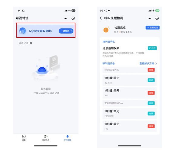 呼叫通知一键检测-App端