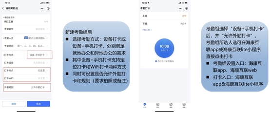 在考勤方式上需要满足传统的门禁刷卡、指纹识别,也能提供更加便捷的刷脸打卡,满足偶尔的外勤打卡,同时能够有效规避虚假打卡的行为;