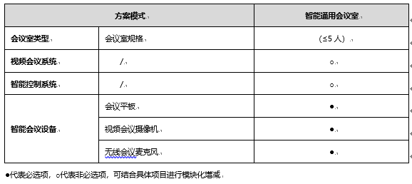 方案通过硬件+软件组合,提供标准化、模块化场景方案,帮助企业租户打造协同型智能会议室,按照会议办公实际规划及投入预算进行选择。