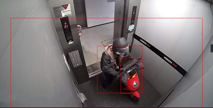 当有电瓶车进入电梯时,摄像机内置扬声器会实时播报电瓶车禁入、禁止使用头盔等遮挡摄像机行为的语音提醒,通过场景化语音及物业远程喊话形式,有效规避电瓶车上楼事件的发生。
