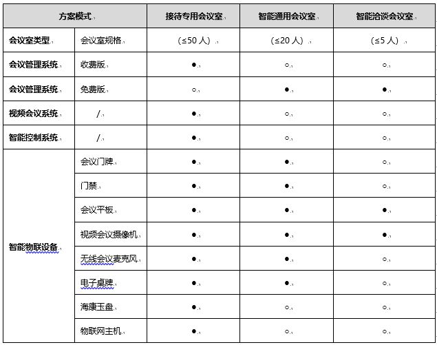 智能物联设备,主要指支撑以上三大管理系统的智能物联网硬件设备,包含会议电子门牌(门禁)、会议平板、视频会议摄像机、无线话筒、电子桌牌、海康玉盘、物联网主机、环境设施标准模块,可结合不同方案模式进行集成。