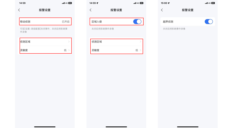 如果画面中有植物等易被风吹干扰的物体,建议选择低灵敏度,或者开通“智能分析”增值服务,通过云平台智能算法可有效降低误报事件。