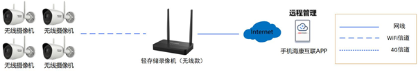 该组网方式满足有网无线的快速部署需求,录像机出厂自带64G存储空间,存储时长可根据实际需求外扩至30天;在部署方面,摄像机和录像机兼即插即用,在手机互联APP端,灵活添加录像机后,即可一键识别添加摄像机,给用户带来极为便携的管理操作体验。