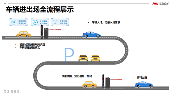 海康威视推出嵌入式终端配合抓拍机的方案,记录过车信息,可根据场景灵活配置放行规则。