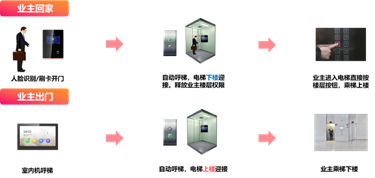 电梯等候服务:可与对讲系统联动,为业主和访客提供呼梯服务,来访者呼叫室内机开门成功的同时,电梯自动到达一楼处等候,减少等候时间。