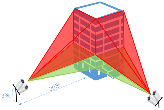 在居民住宅小区中,由于位置、楼层、朝向、间距等关系,建议合理覆盖各个楼栋的视频区域,如小区楼前的绿化带中或空地处,但需无树木及其他物体遮挡,架设在距地面3米、距楼层20米以外的位置。