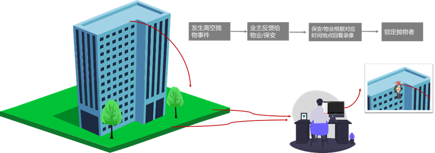 海康威视小区高空抛物可视化管理方案通过高空抛物专用摄像机来实现图像的高清采集,通过交换机,将信号稳定传至后端录像机,实现实时预览、存储、回查等其他功能。