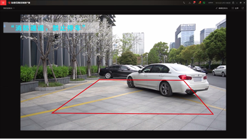 消防通道车辆违停检测应用方案,实现消防通道日常可视化管理,避免车辆违停占用消防通道。当摄像机检测到车辆驶入违停区域后,联动内置语音播报 “消防通道,禁止停车”进行声光警戒震慑,提醒违停驾驶员驶离违停区域。报警消息推送到监控中心及手机APP上,便于管理人员及时发现车辆违停情况并进行处理。还可以通过海康互联APP进行双向语音对讲,再次进行提醒,减少人工巡检的成本。