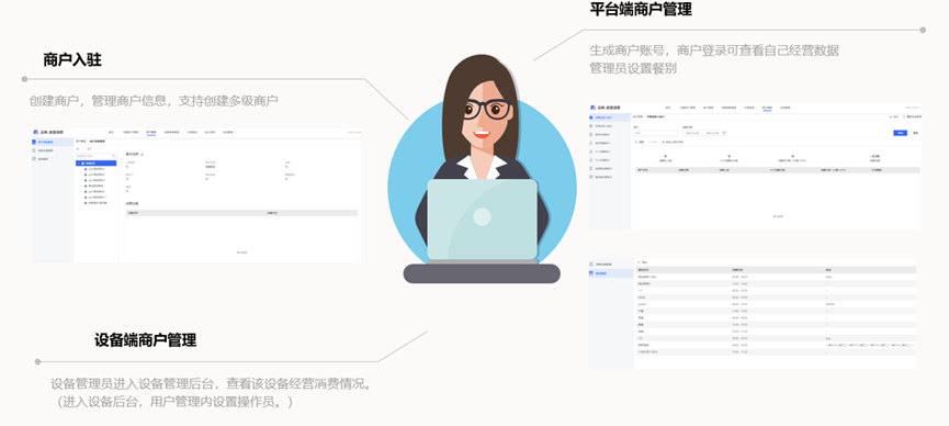 支持创建多级商户,可管理商户信息;生成商户账号后,商户可登录查看自己的经营数据